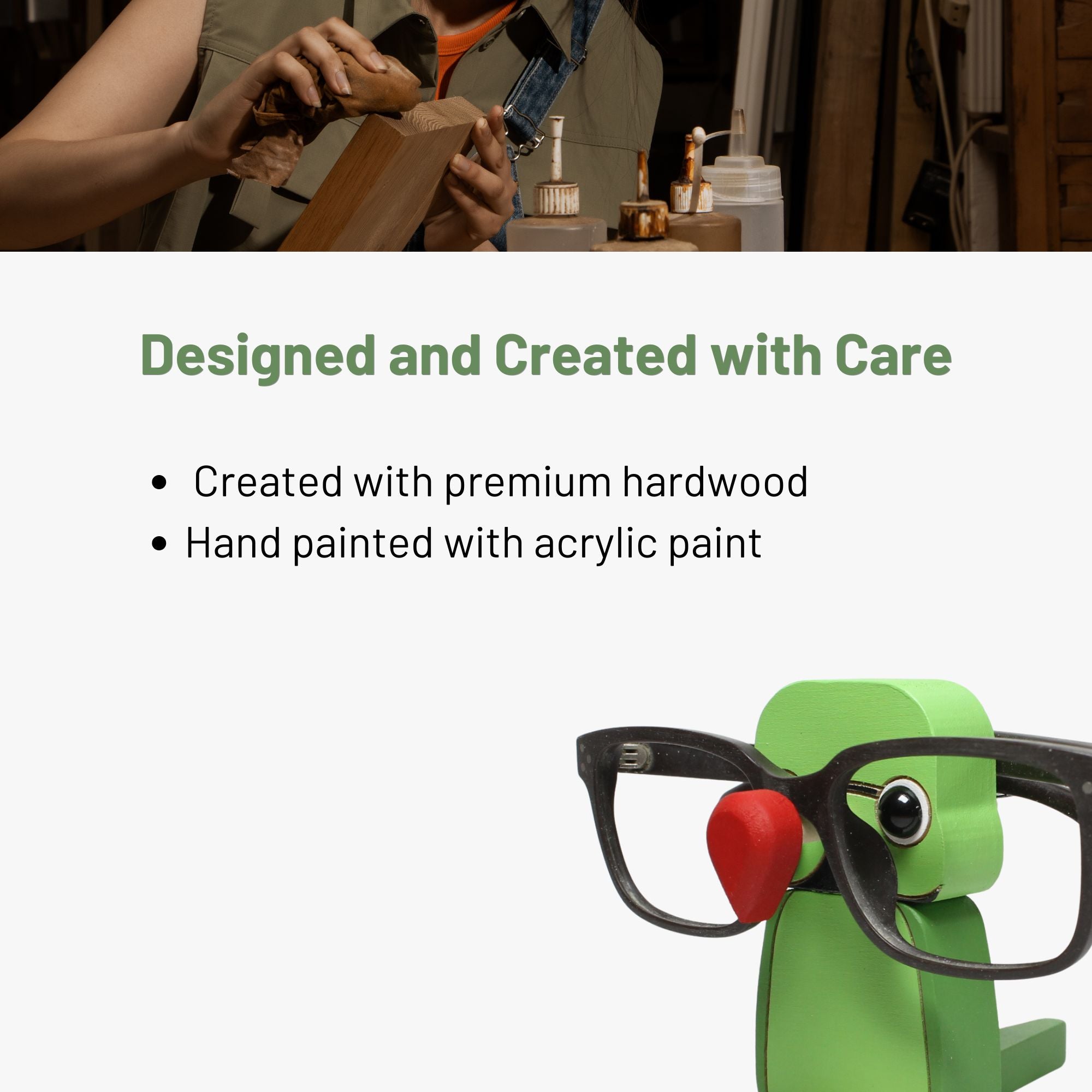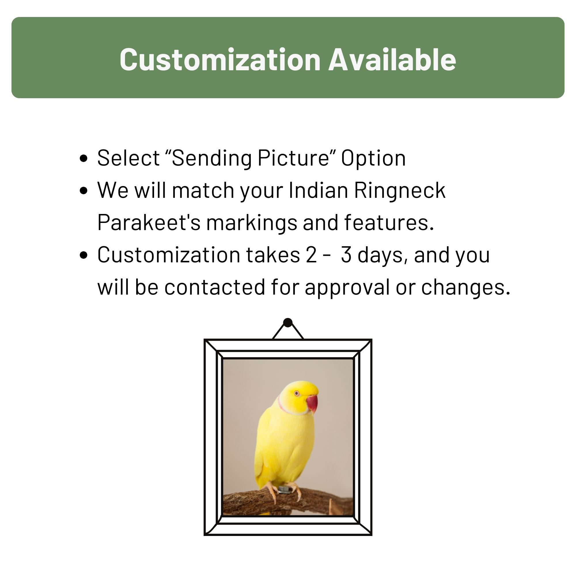 We hope that our Indian Ringneck Parakeet eyeglass stand brings joy and organization to your everyday life!